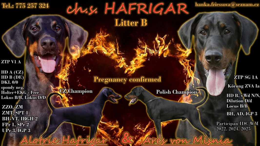 Více informací o spojení - Plánovaný vrh v chovatelské stanici Hafrigar: Ares von Misnia a Alotrie Hafrigar – working-dog